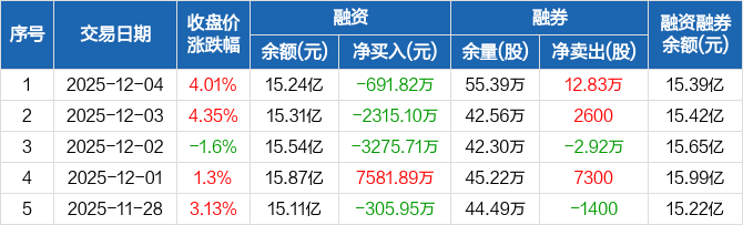 锡业股份:连续3日融资净偿还累计6282.63万元(12-04)
