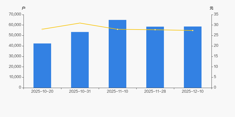 2025年10月20日至今,公司股东户数显著增长,区间涨幅为38.24%。2025年10月20日至2025年12月10日区间股价下降2.18%。