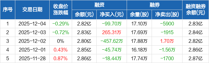 蓝焰控股:融资净偿还99.7万元,融资余额2.82亿元(12-04)