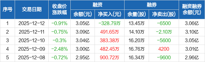 蓝焰控股:融资净偿还328.79万元,融资余额3.05亿元(12-12)