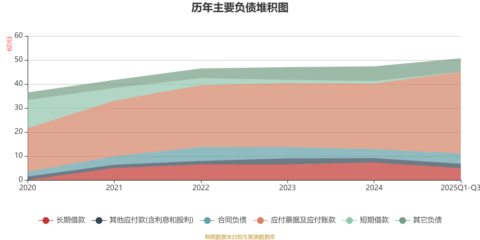 负债重大变化方面,截至2025年三季度末,公司应付票据及应付账款较上年末增加24.91%,占公司总资产比重上升4.98个百分点;长期借款较上年末减少32.88%,占公司总资产比重下降2.33个百分点;短期借款较上年末减少100%,占公司总资产比重下降0.9个百分点;长期应付款合计较上年末减少37.55%,占公司总资产比重下降0.47个百分点。
