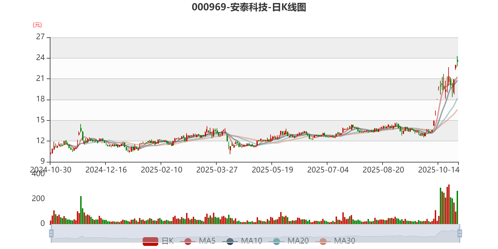中证智能财讯安泰科技(000969)10月30日披露2025年第三季度报告。前三季度公司实现营业总收入58.18亿元,同比下降0.60%;归母净利润2.82亿元,同比下降17.19%;扣非净利润2.56亿元,同比增长11.39%;经营活动产生的现金流量净额为2.03亿元,同比增长172.24%;报告期内,安泰科技基本每股收益为0.2702元,加权平均净资产收益率为5.12%。