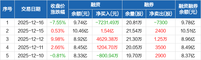 安泰科技:融资净偿还7231.49万元,融资余额9.74亿元(12-16)