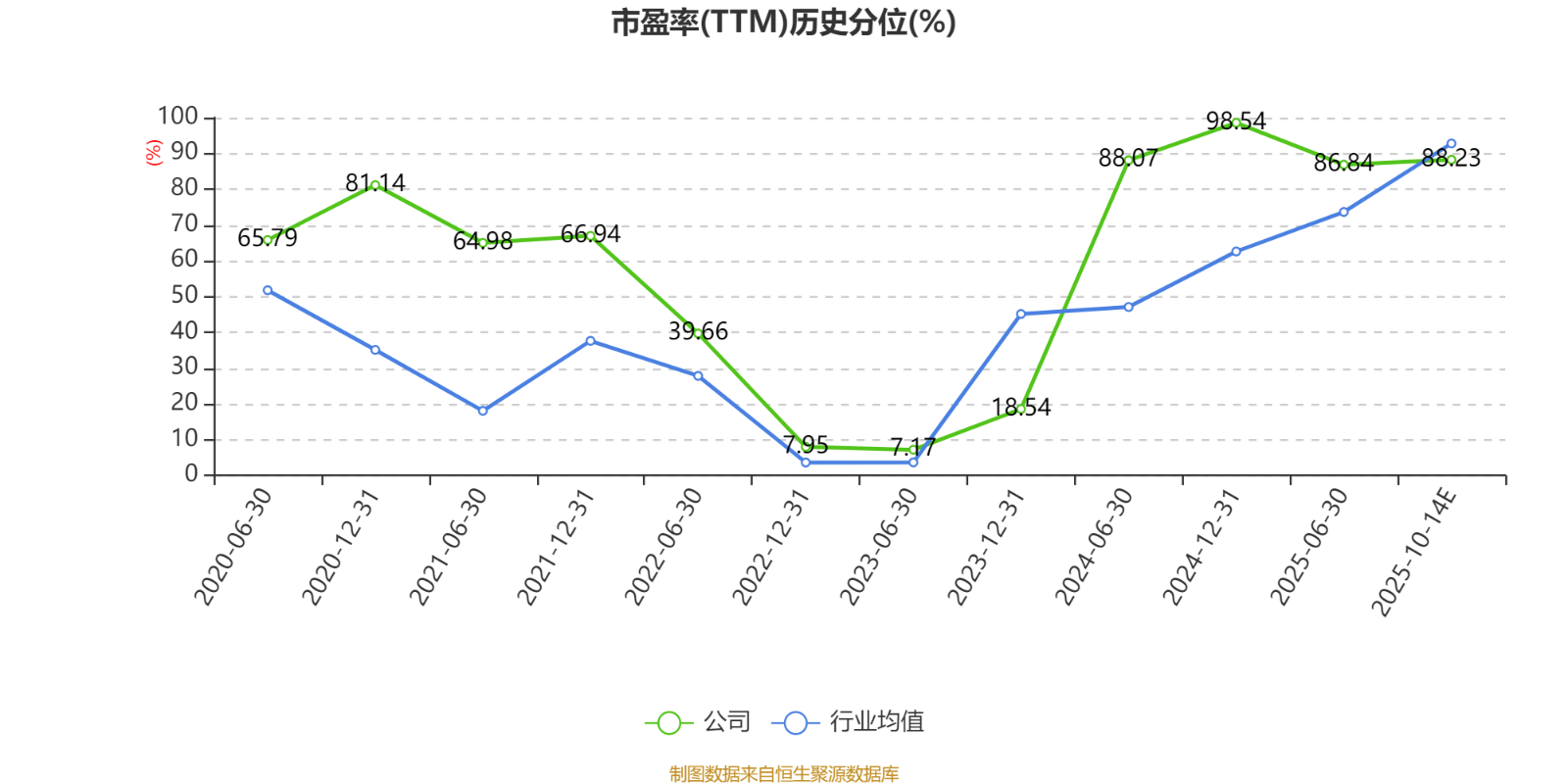 以本次披露业绩预告均值计算,公司近年市盈率(TTM)图如下所示: