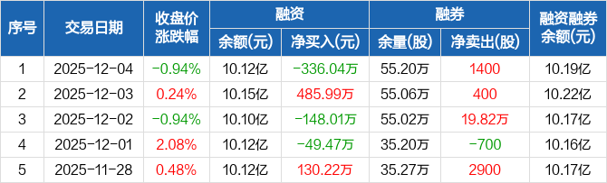 中科三环:融资净偿还336.04万元,融资余额10.12亿元(12-04)