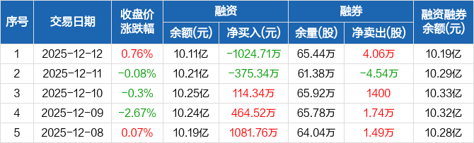 中科三环:融资净偿还1024.71万元,融资余额10.11亿元(12-12)