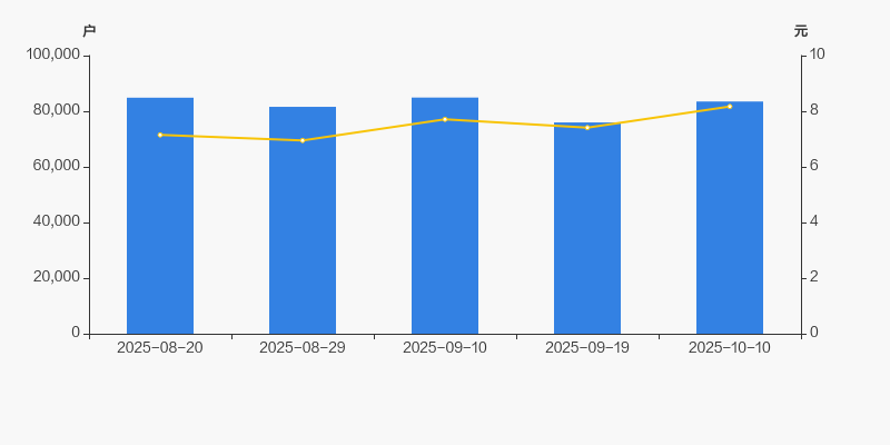 2025年8月20日至今,公司股东户数有所下降,区间跌幅为1.62%。2025年8月20日至2025年10月10日区间股价上涨14.27%。