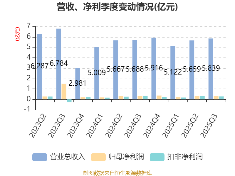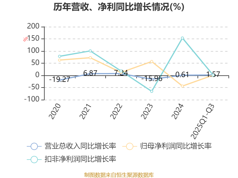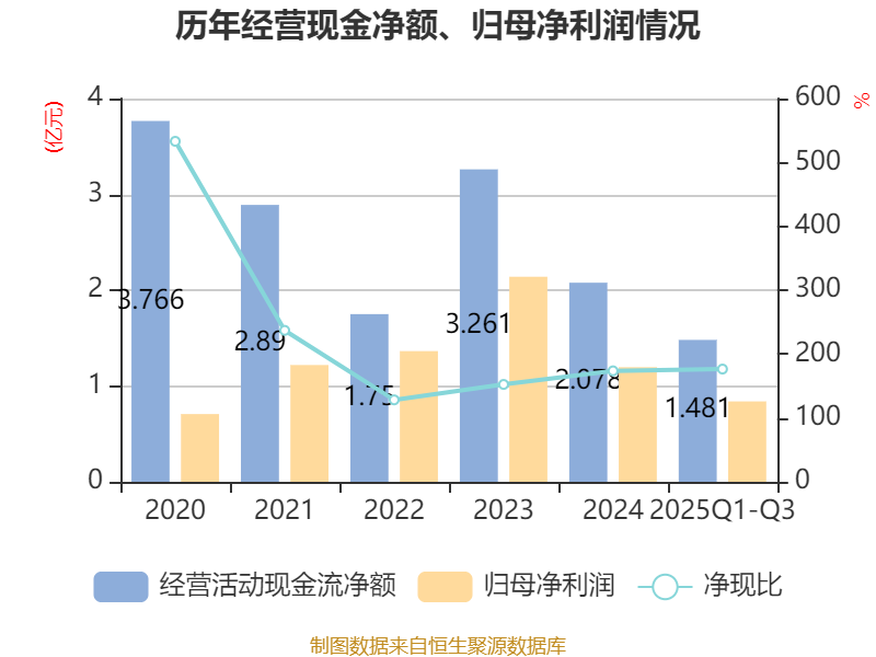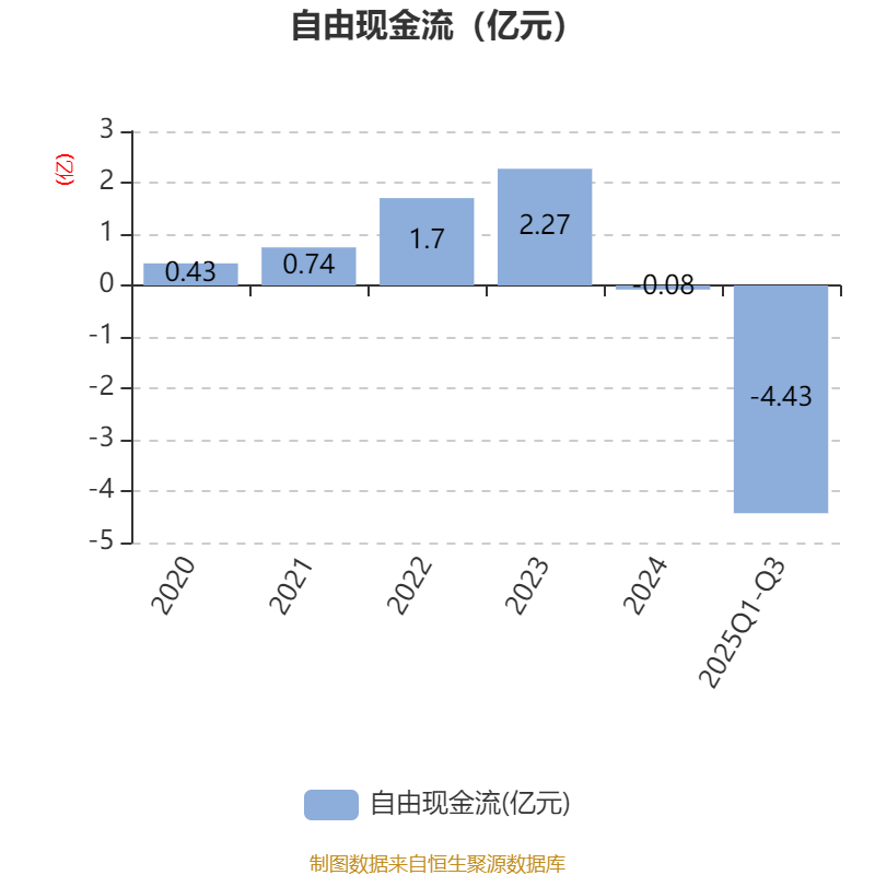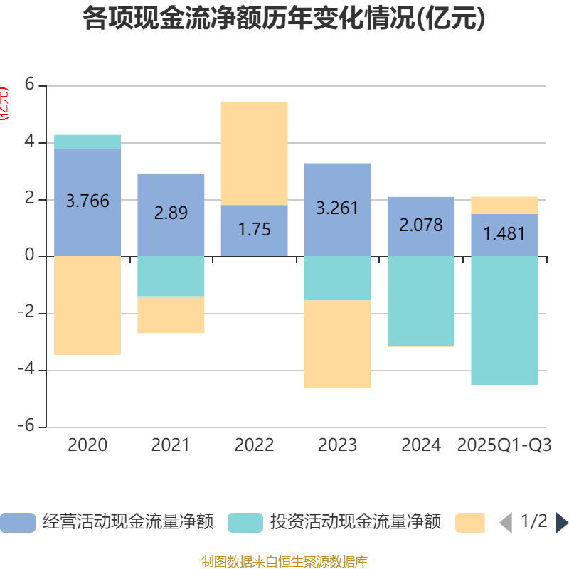 2025年前三季度,公司经营活动现金流净额为1.48亿元,同比增长43.58%;筹资活动现金流净额6066.45万元,同比增加6755.65万元;投资活动现金流净额-4.54亿元,上年同期为-2.57亿元。
