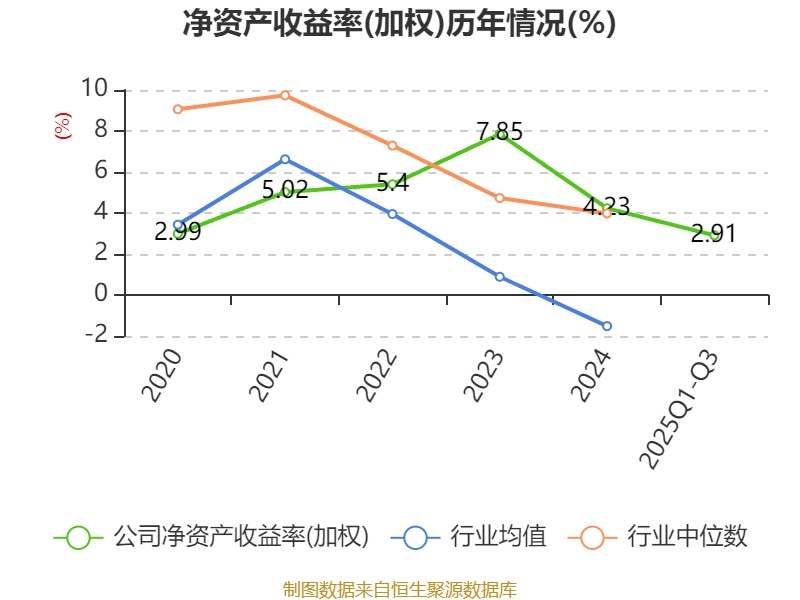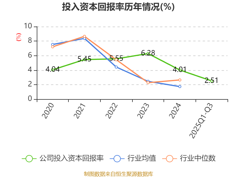 盈利能力方面, 2025年前三季度公司加权平均净资产收益率为2.91%,同比下降0.04个百分点。公司2025年前三季度投入资本回报率为2.51%,较上年同期下降0.16个百分点。