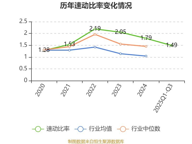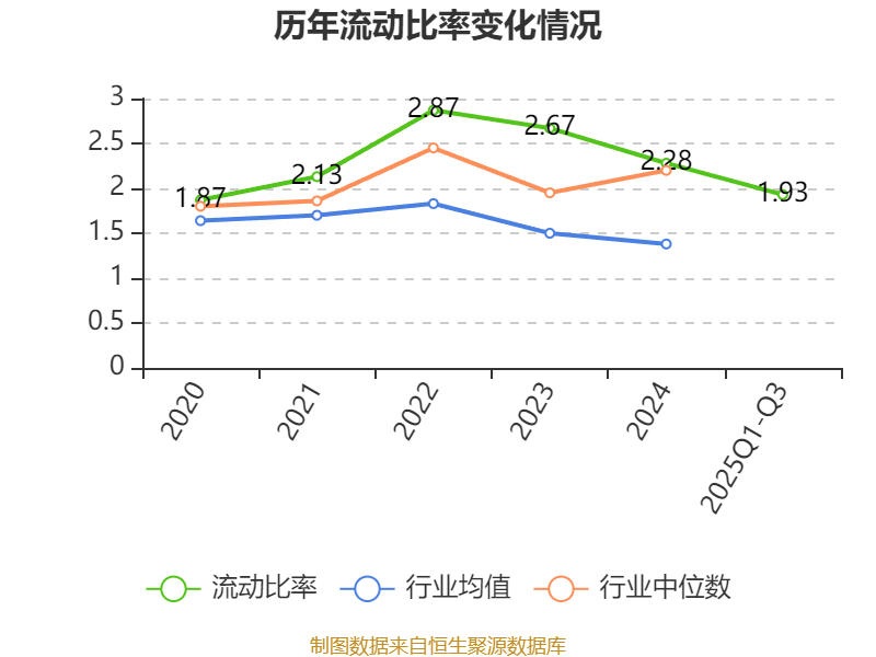 2025年前三季度,公司流动比率为1.93,速动比率为1.49。