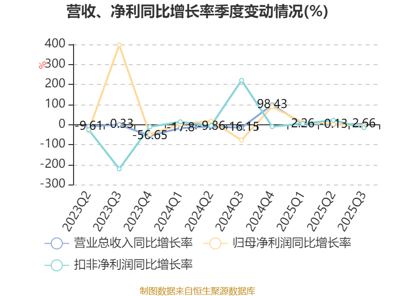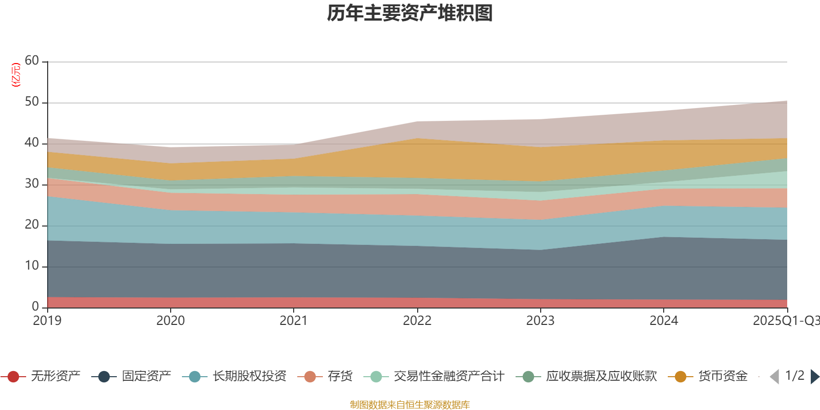 资产重大变化方面,截至2025年三季度末,公司货币资金较上年末减少33.46%,占公司总资产比重下降5.61个百分点;交易性金融资产合计较上年末增加161.41%,占公司总资产比重上升4.96个百分点;在建工程合计较上年末增加308.29%,占公司总资产比重上升3.51个百分点;固定资产较上年末减少4.35%,占公司总资产比重下降2.88个百分点。