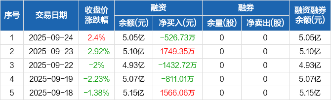 众泰汽车:融资净偿还526.73万元,融资余额5.05亿元(09-24)