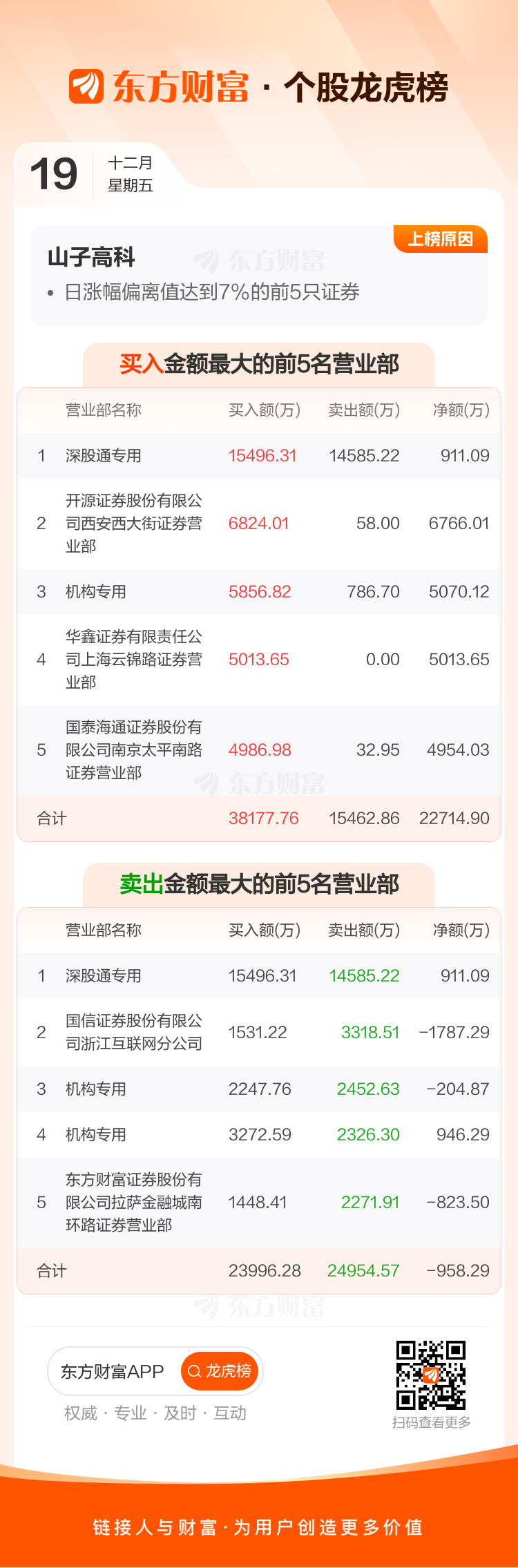 山子高科(000981)龙虎榜数据(12-19)