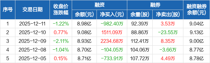 山西焦煤:融资净偿还982.4万元,融资余额8.98亿元(12-11)
