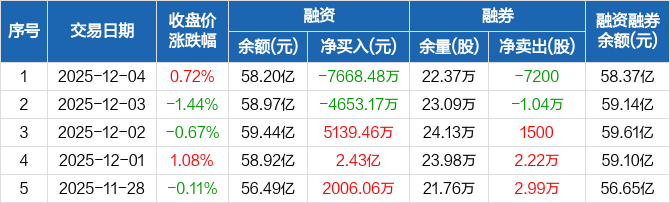 华工科技:融资净偿还7668.48万元,融资余额58.2亿元(12-04)