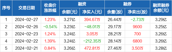 诚志股份:融资净买入394.67万元,融资余额3.27亿元(02-27)