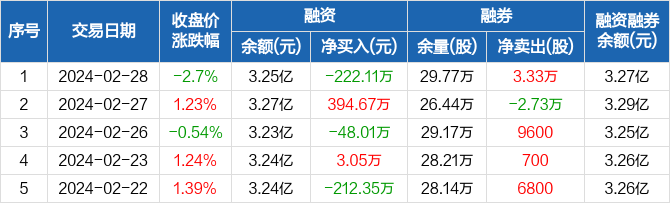 诚志股份:融资净偿还222.11万元,融资余额3.25亿元(02-28)