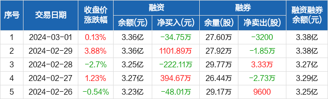 诚志股份:融资净偿还34.75万元,融资余额3.36亿元(03-01)