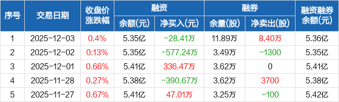 诚志股份:融资净偿还28.41万元,融资余额5.35亿元(12-03)