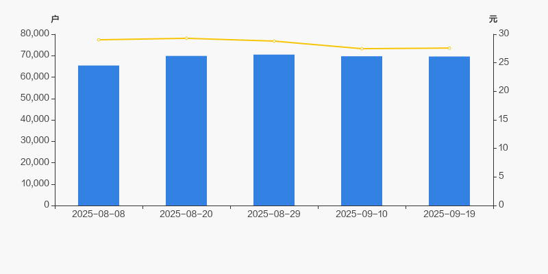 2025年8月8日至今,公司股东户数有所增长,区间涨幅为6.42%。2025年8月8日至2025年9月19日区间股价下降4.99%。