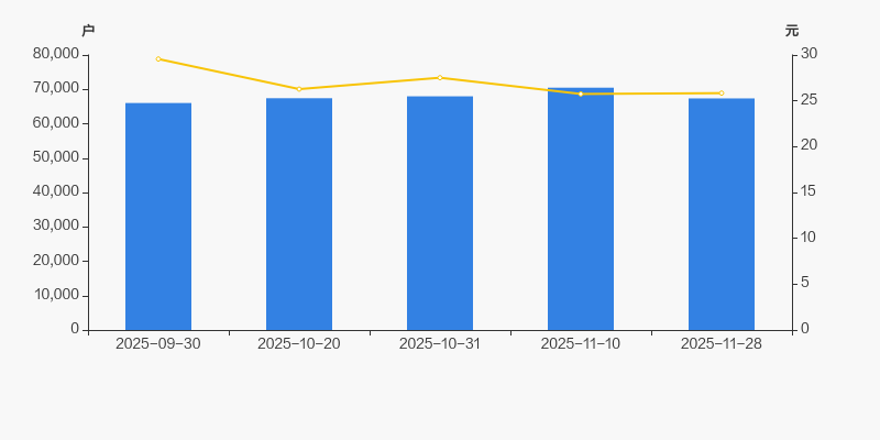 2025年9月30日至今,公司股东户数有所增长,区间涨幅为2.02%。2025年9月30日至2025年11月28日区间股价下降12.58%。