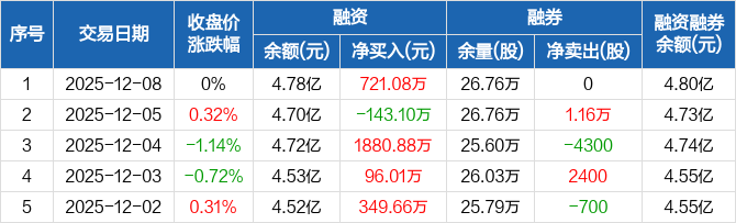隆平高科:融资净买入721.08万元,融资余额4.78亿元(12-08)