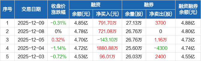 隆平高科:融资净买入791.7万元,融资余额4.85亿元(12-09)