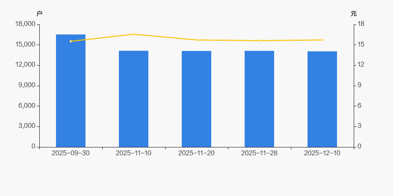 2025年9月30日至今,公司股东户数显著下降,区间跌幅为15.00%。2025年9月30日至2025年12月10日区间股价上涨1.29%。