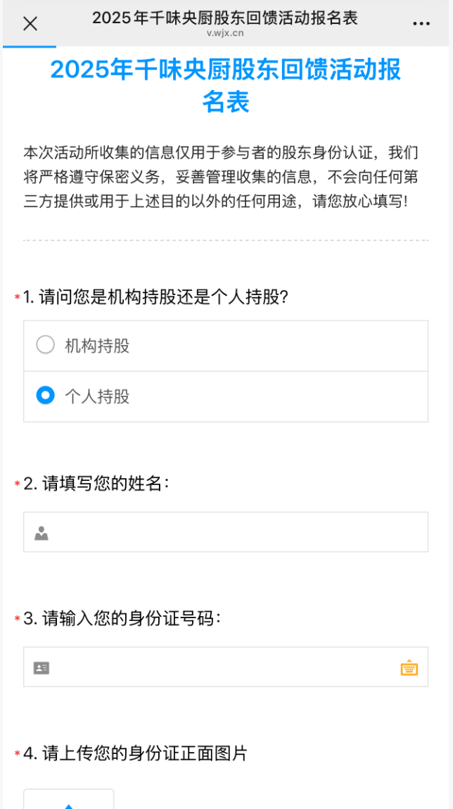 【导读】千味央厨:持有100股(含)以上的自然人股东可领取1份价值200元的产品礼包