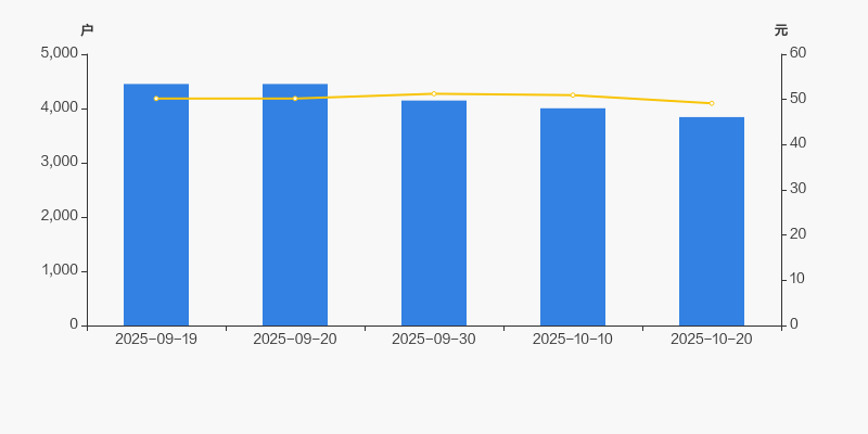 自2025年9月20日以来,公司股东户数连续3期下降,截至目前减幅为13.70%。2025年9月20日至2025年10月20日区间股价下降2.09%。