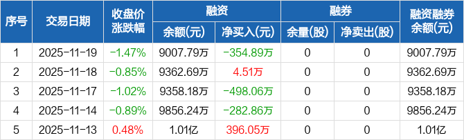 永达股份:融资净偿还354.89万元,融资余额9007.79万元(11-19)