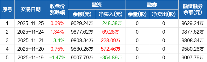 永达股份:融资净偿还248.38万元,融资余额9629.24万元(11-25)