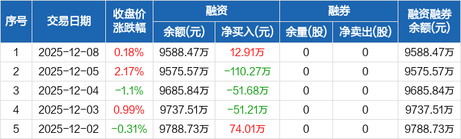 永达股份:融资净买入12.91万元,融资余额9588.47万元(12-08)