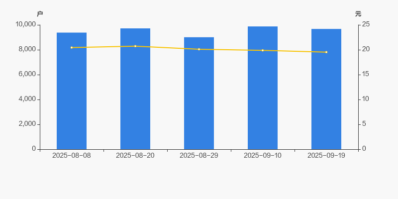 2025年8月8日至今,公司股东户数有所增长,区间涨幅为3.13%。2025年8月8日至2025年9月19日区间股价下降4.50%。