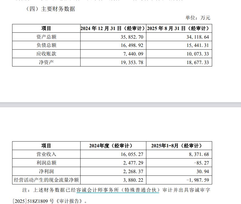 然而到了12月17日,联合精密披露的迈特航空截至2024年底的经审计资产总额为3.59亿元,负债总额1.65亿元,净资产1.94亿元。2024年度,迈特航空的营收1.61亿元,净利润2268.37万元。