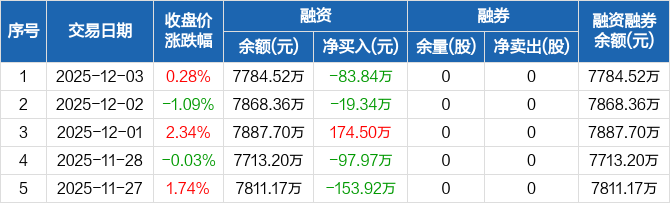 速达股份:融资净偿还83.84万元,融资余额7784.52万元(12-03)