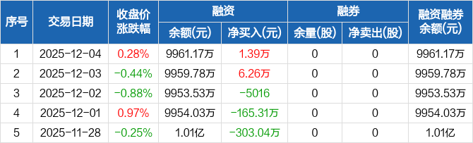 强邦新材:融资净买入1.39万元,融资余额9961.17万元(12-04)