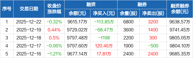 强邦新材:连续3日融资净偿还累计182.44万元(12-22)