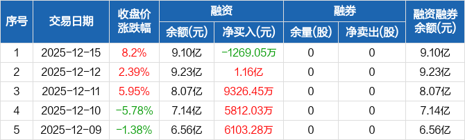 中国铀业:融资净偿还1269.05万元,融资余额9.1亿元(12-15)
