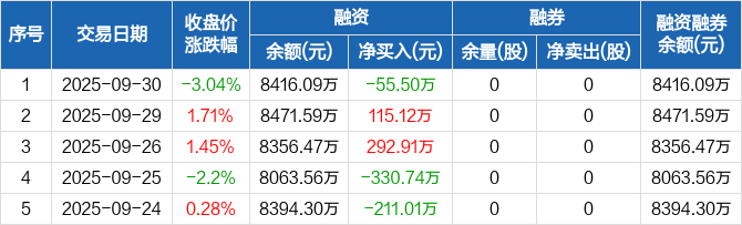 三联锻造:融资净偿还55.5万元,融资余额8416.09万元(09-30)