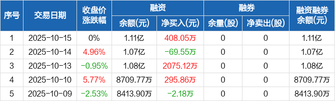 三联锻造:融资净买入408.05万元,融资余额1.11亿元(10-15)
