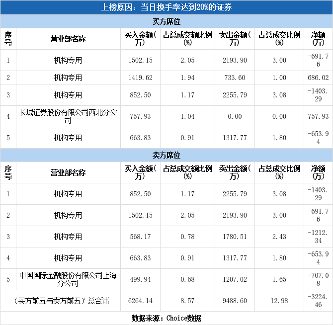 多主力现身龙虎榜,三联锻造换手率达36.85%(10-22)