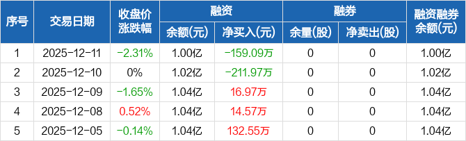 三联锻造:融资净偿还159.09万元,融资余额1亿元(12-11)
