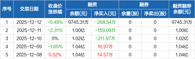 三联锻造:连续3日融资净偿还累计639.61万元(12-12)