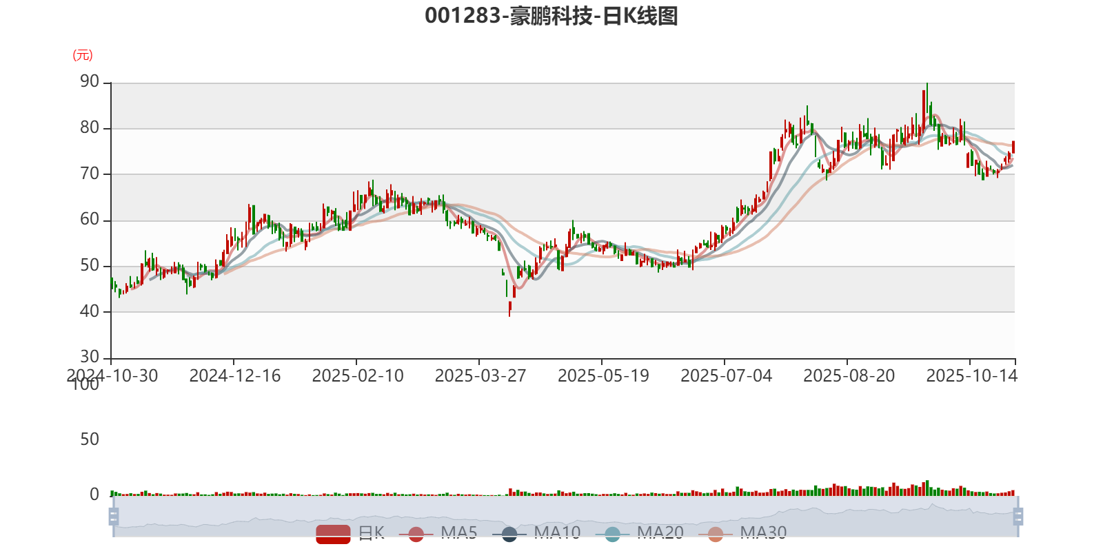 以10月29日收盘价计算,豪鹏科技目前市盈率(TTM)约为40.83倍,市净率(LF)约2.23倍,市销率(TTM)约1.35倍。