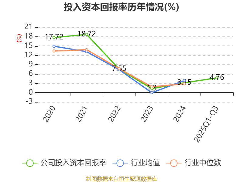 盈利能力方面, 2025年前三季度公司加权平均净资产收益率为6.9%,同比上升3.84个百分点。公司2025年前三季度投入资本回报率为4.76%,较上年同期上升2.27个百分点。
