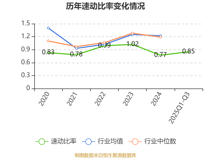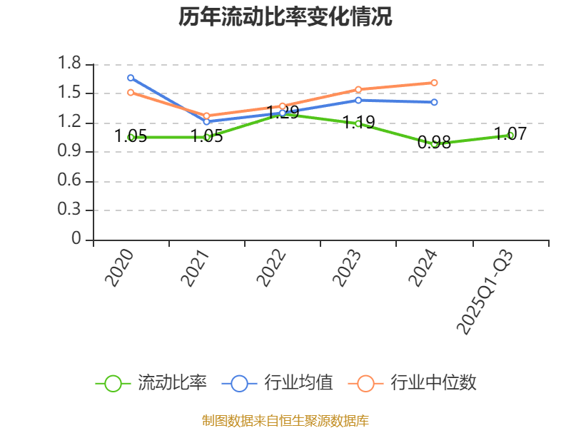 2025年前三季度,公司流动比率为1.07,速动比率为0.85。