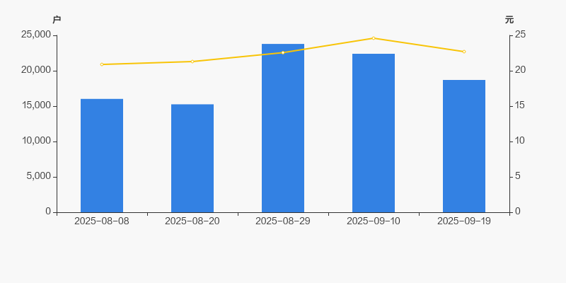 2025年8月8日至今,公司股东户数显著增长,区间涨幅为16.71%。2025年8月8日至2025年9月19日区间股价上涨8.66%。