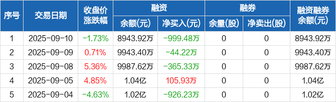 夏厦精密:连续3日融资净偿还累计1409.03万元(09-10)