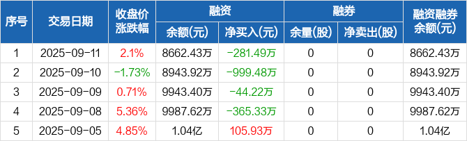夏厦精密:连续4日融资净偿还累计1690.52万元(09-11)